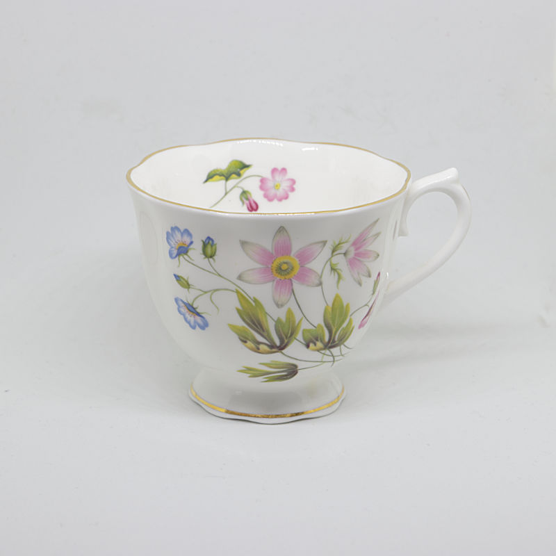Fine bone china fluted Tea Cup made by Richmond. Decorated with delicate wild anemone flowers and leaves.